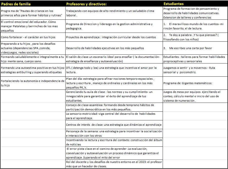 Diseñamos programas a la medida de sus necesidades. Programas pedagogicos de mayor impacto dirigidos a: